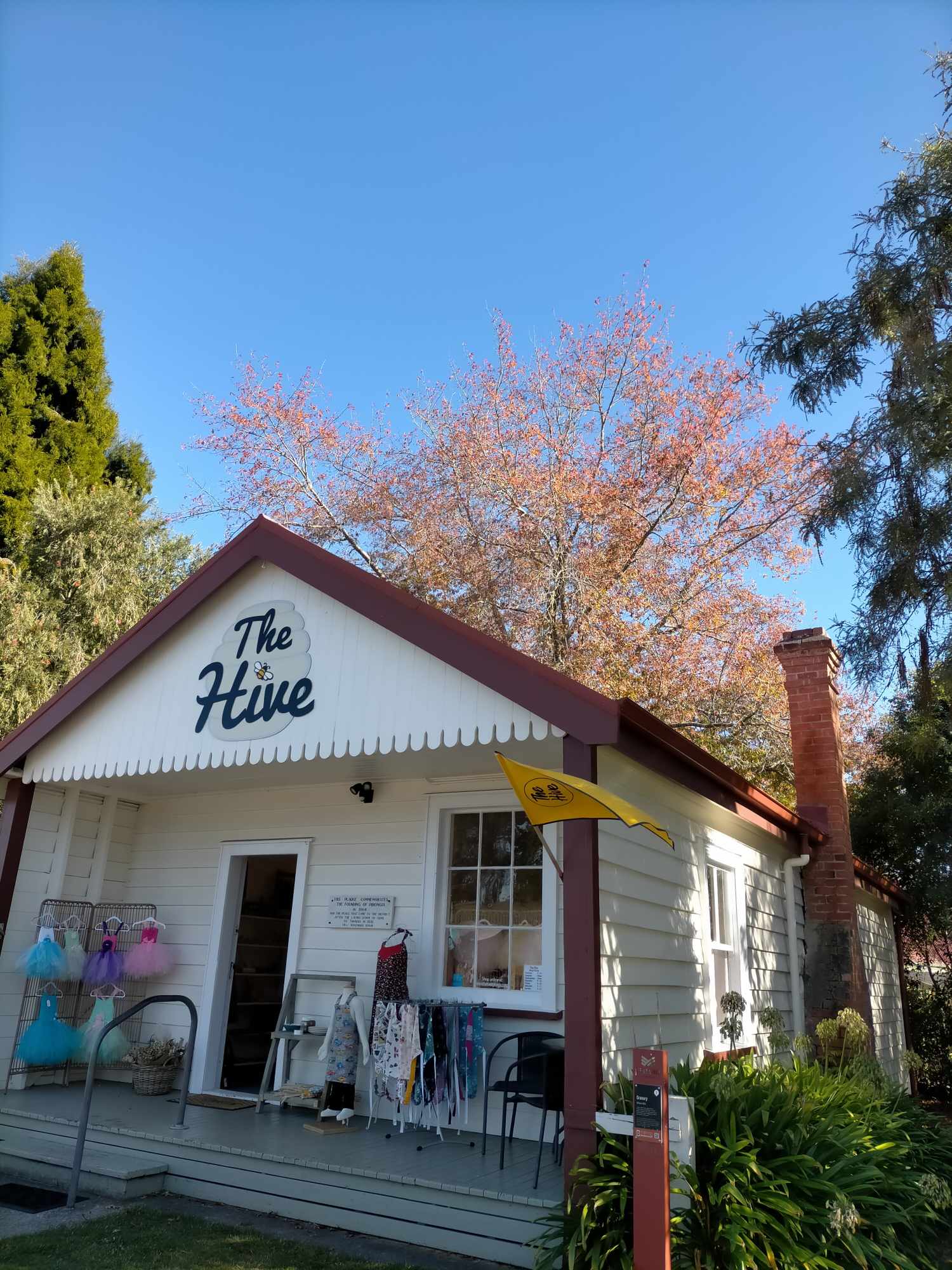 'The Hive's' name is derived in part by the previous use of the building being a honey shop and the quaint nature of the little building itself. Shereen continues to sell honey and bee products.